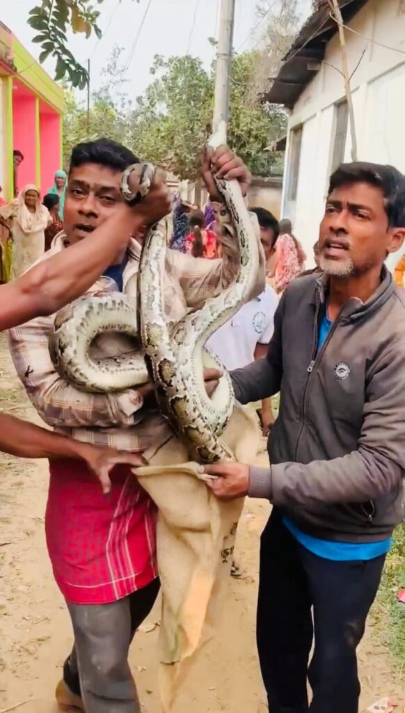 মৌরভীবাজারের শ্রীমঙ্গলে বসত ঘরের সিলিং এর উপর থেকে বিরাট আকৃতির একটি অজগর সাপ উদ্ধার করেছে বাংলাদেশ বন্যপ্রাণী সেবা ফাউন্ডেশন।
