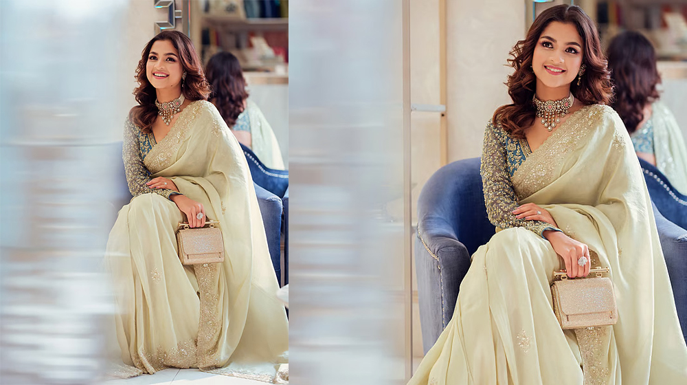 তার সফট পেস্তা-গোল্ড শেডের শাড়িটি প্রথম নজরেই তৈরি করে অভিজাত অনুভূতি। এই শাড়ির সঙ্গে তিনি বেছে নিয়েছেন ফুল স্লিভ শিয়ার ফেব্রিকের ব্লাউজ। হাতে ডায়মন্ড রিং, আর সঙ্গে গোল্ড টোনের স্ট্রাকচার্ড ক্লাচ পুরো লুকটিকে সম্পূর্ণ করেছে নিখুঁতভাবে।মেকআপে ছিল সফট গ্ল্যাম ছোঁয়া। চোখে হালকা টোনের আইশ্যাডো, কাজল ও আইলাইনারে সংজ্ঞায়িত দৃষ্টি; ঠোঁটে রোজ পিঙ্ক আভা। চুল রাখা হয়েছে নরম কার্ল।