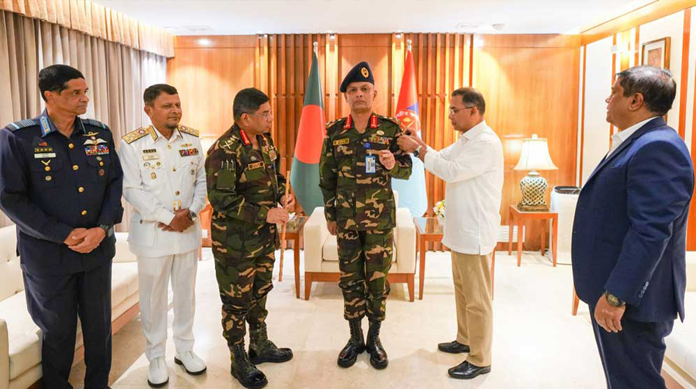 সেনাবাহিনী প্রধান জেনারেল ওয়াকার-উজ-জামান, নৌবাহিনী প্রধান অ্যাডমিরাল এম নাজমুল হাসান এবং বিমান বাহিনী প্রধান এয়ার চিফ মার্শাল হাসান মাহমুদ খাঁন অনুষ্ঠানে উপস্থিত ছিলেন।