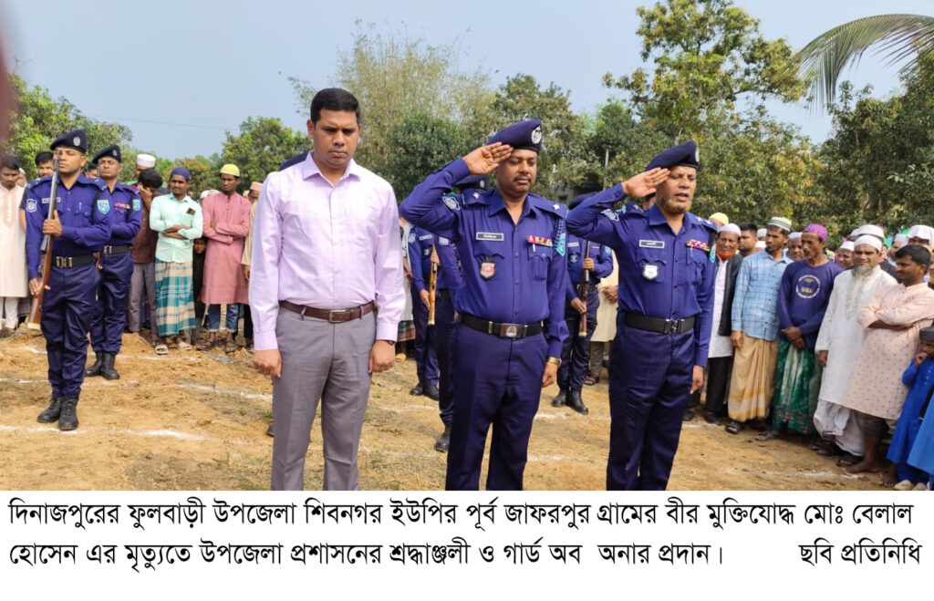 দিনাজপুরের ফুলবাড়ী উপজেলা শিবনগর ইউপির পূর্ব জাফরপুর গ্রামের বীর মুক্তিযোদ্ধ মোঃ বেলাল হোসেন এর মৃত্যুতে উপজেলা প্রশাসনের শ্রদ্ধাঞ্জলী ও গার্ড অব অনার।