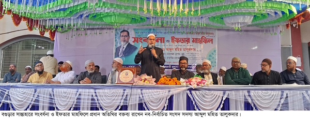 অনুষ্ঠানে আয়োজক কমিটির পক্ষ থেকে সংবর্ধনা প্রদানের জন্য নব-নির্বাচিত সংসদ সদস্য আব্দুল মহিত তালুকদারের হাতে ক্রেষ্ট তুলে দেন সমিতির সভাপতি আতিকুর রহমান মিলন, সাধারণ সম্পাদক লোকমান হোসেন, সহ সভাপতি আলহাজ¦ বেলাল হোসেন ও অর্থ সম্পাদক ওহিদুর রহমান অলি।